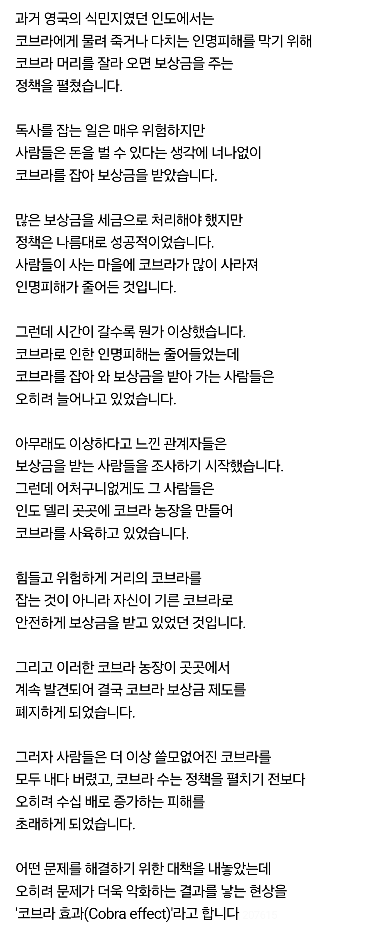 코브라 효과(Cobra effect) 의 무서움