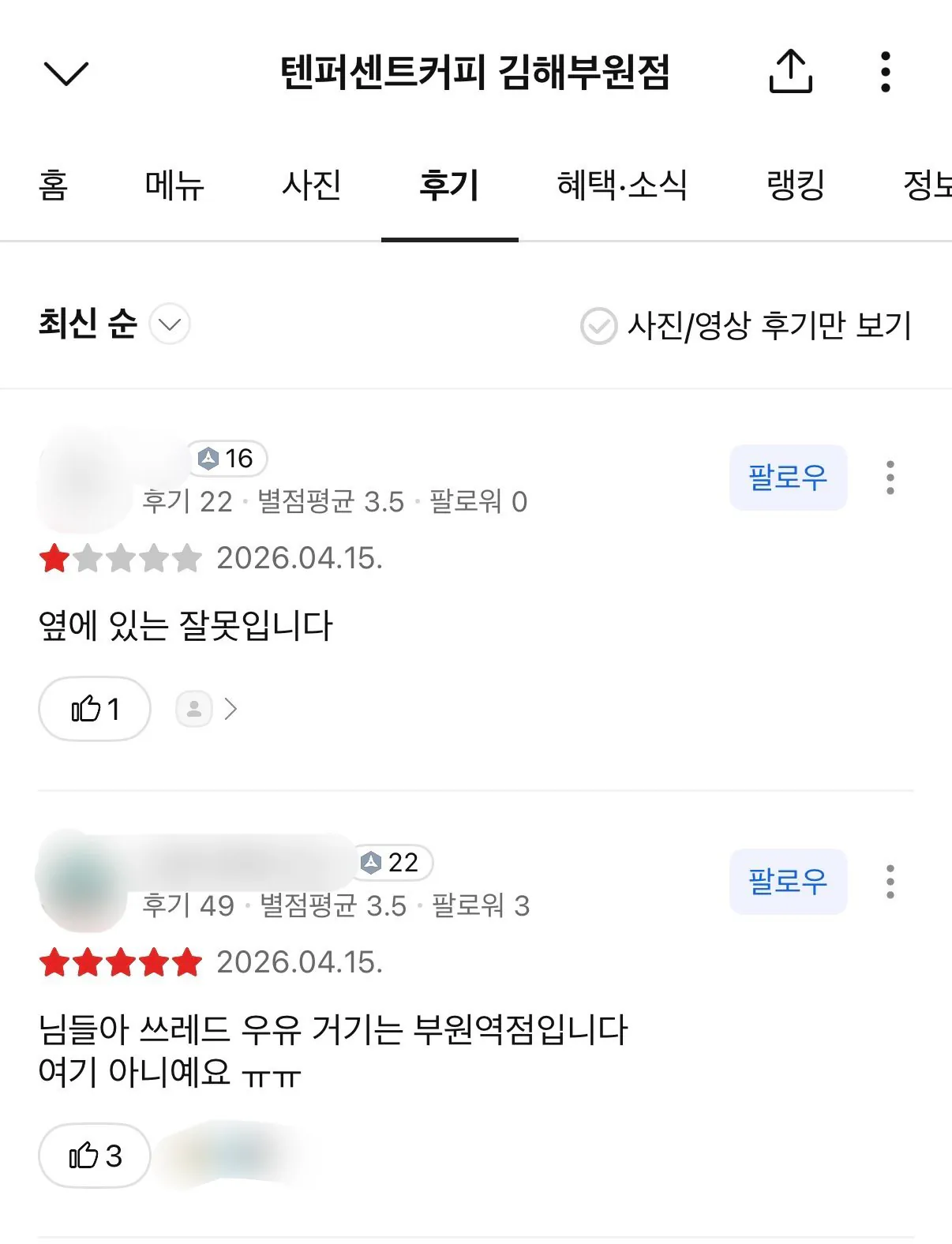 우유배달 카페랑 관계없는 지점 카카오맵 후기