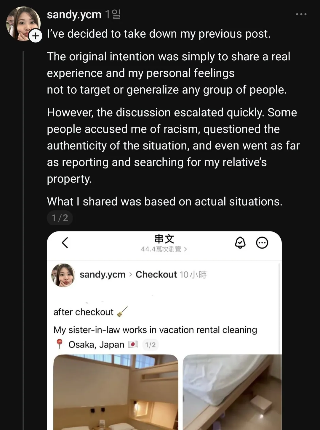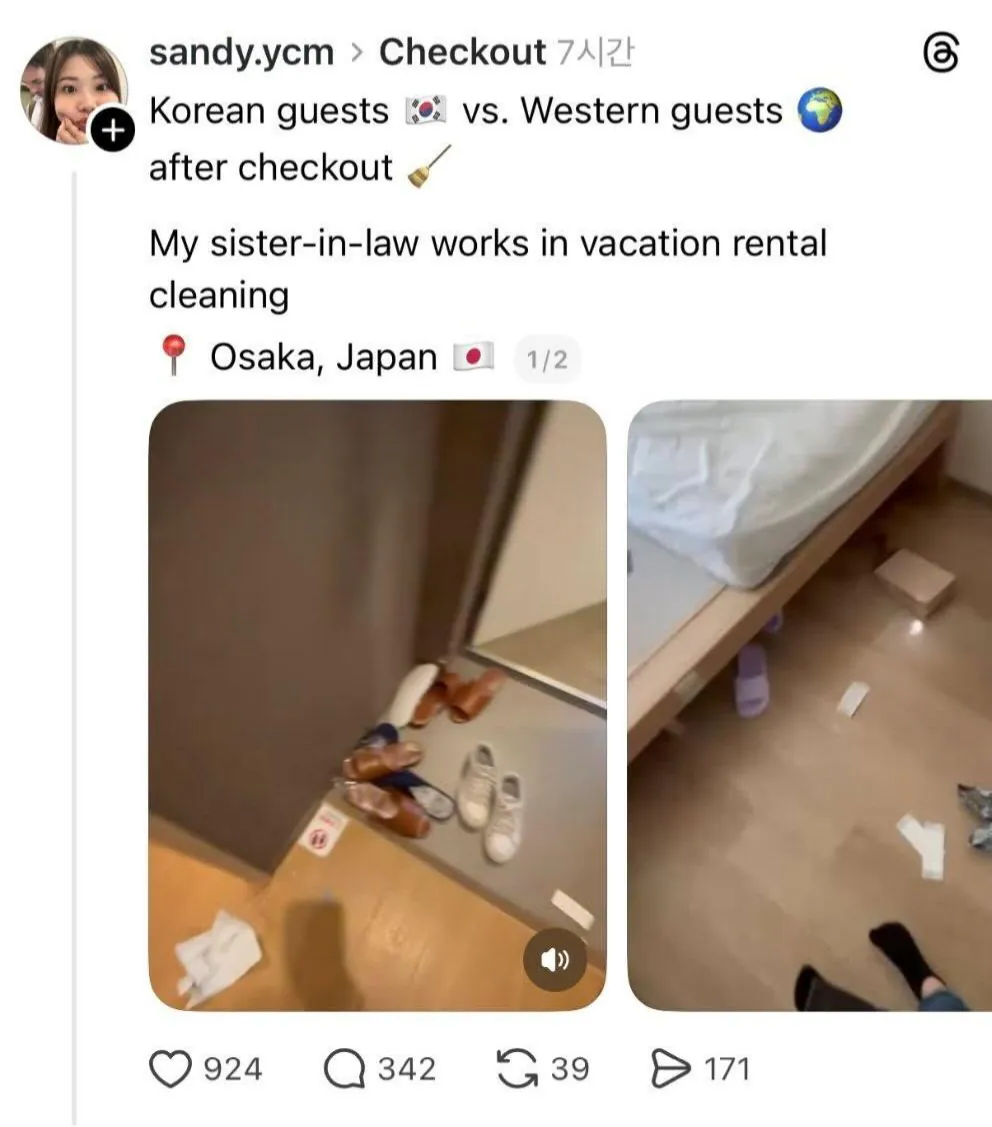 오사카에서 숙박업 하는 대만인이 퇴실 청소를 하는데