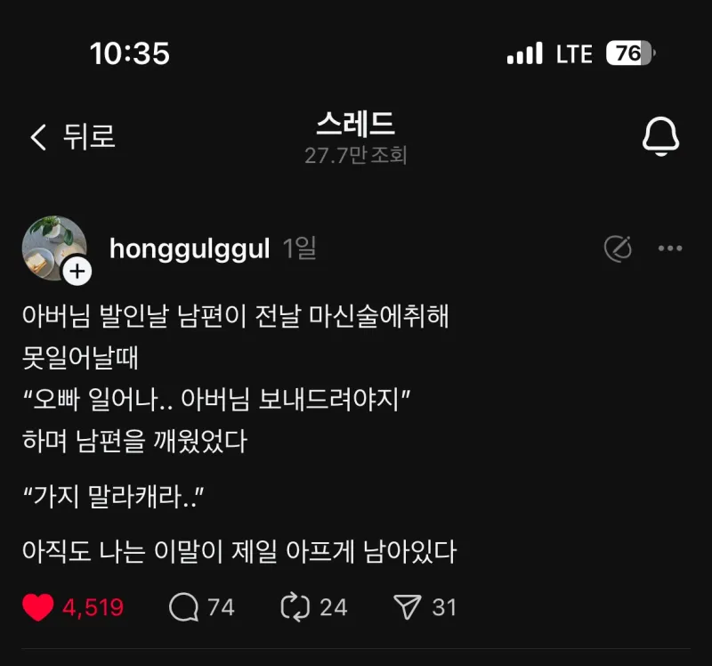 아버님 발인날 남편이 전날 마신 술에 취해 한 말