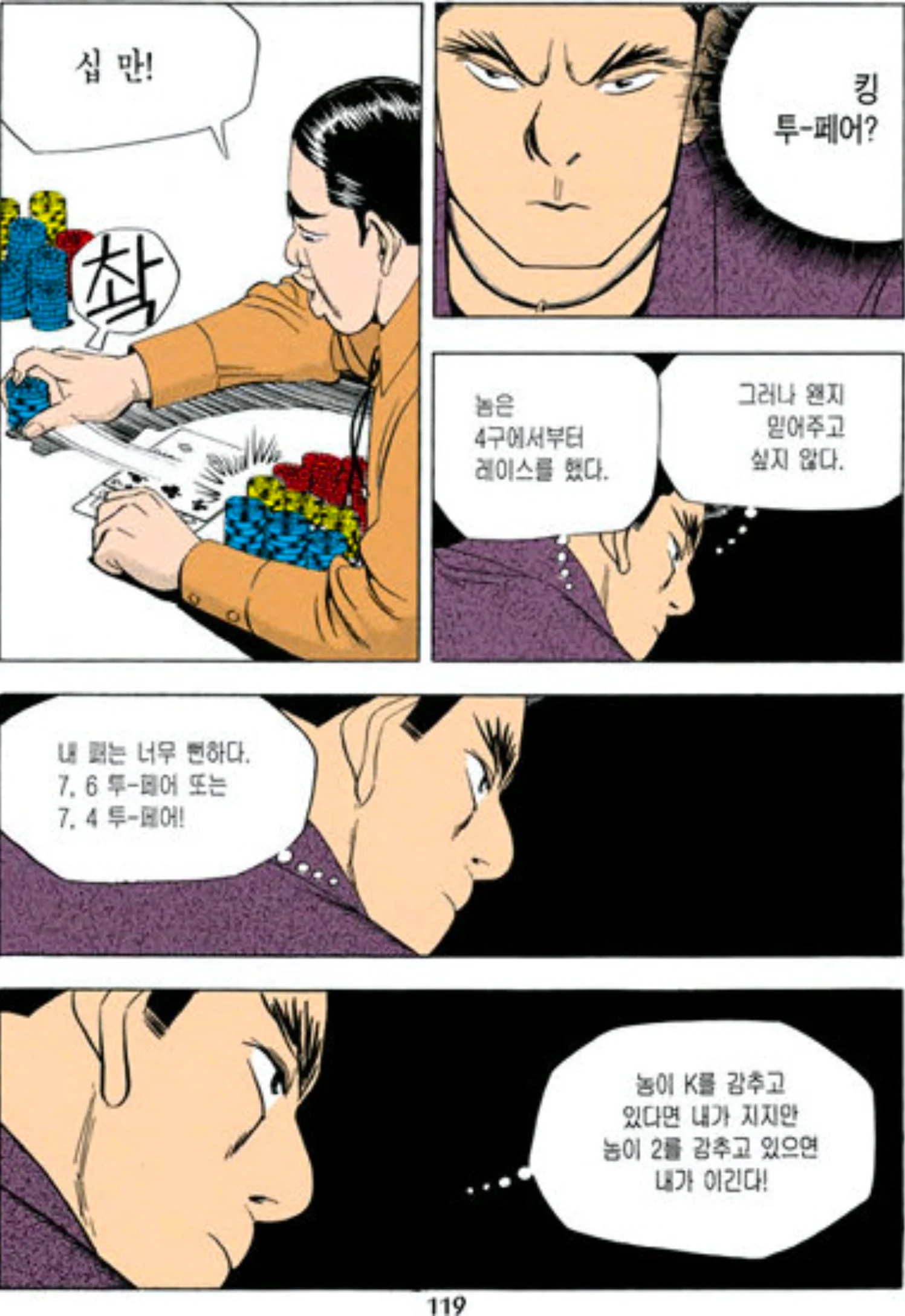 상대에게 킹이 있으면 죽고 2가 있으면 이기는상황