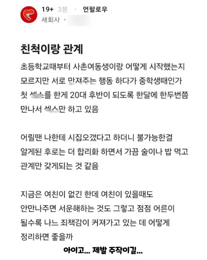 친척이랑 ㅅㅅ한 남자 ㄷㄷ